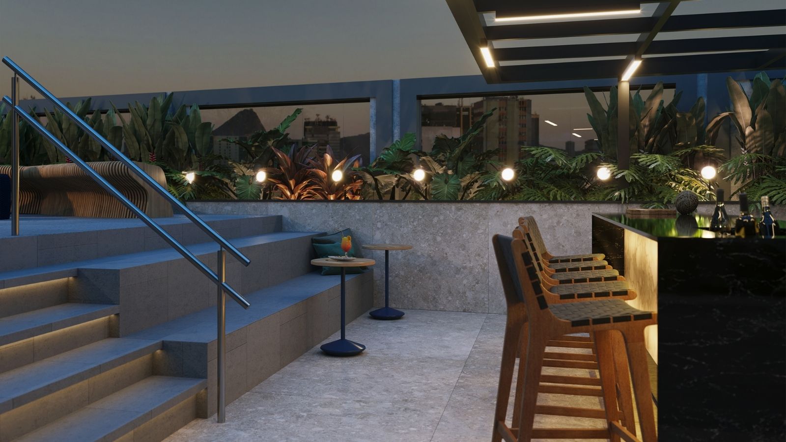 Bom demais é chegar em casa depois de um dia de trabalho e poder relaxar no roofitop mais moderno da região